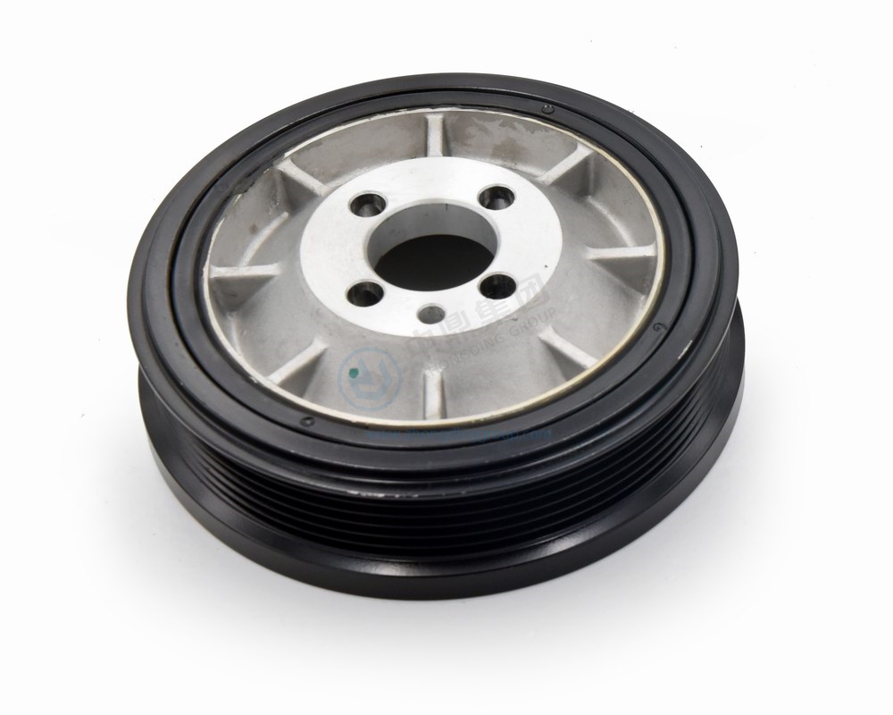 通過(guò)橡膠材料的阻尼和彈性特性,消減曲軸扭轉振動(dòng),提高曲軸的疲勞壽命,減少應力水平、傳遞扭矩,衰減扭矩波動(dòng);減少整車(chē)的振動(dòng)、噪音。使用在發(fā)動(dòng)機曲軸端部,用來(lái)消減曲軸振動(dòng)和傳遞扭矩的部件