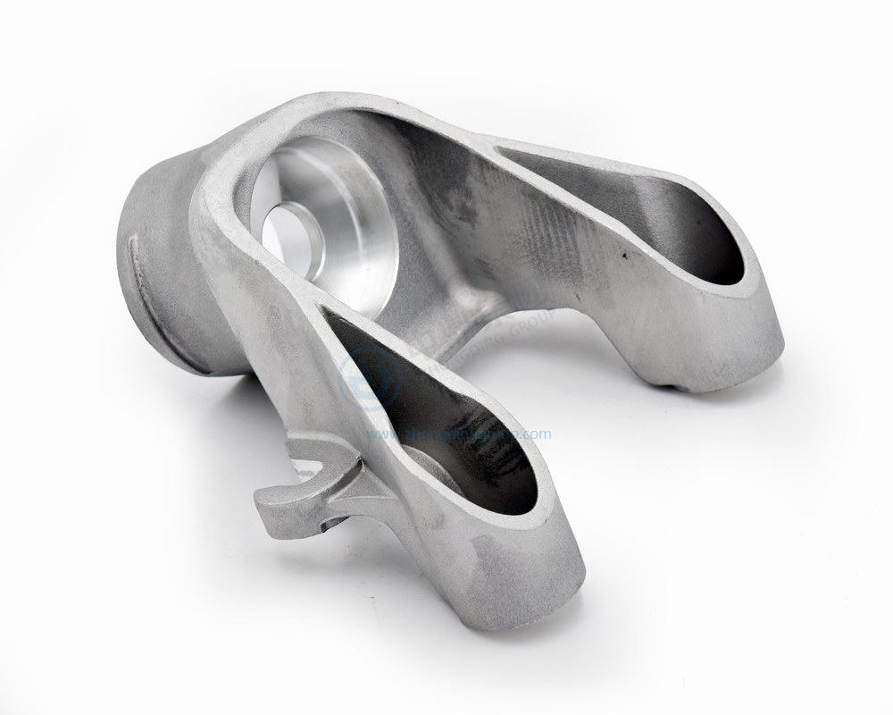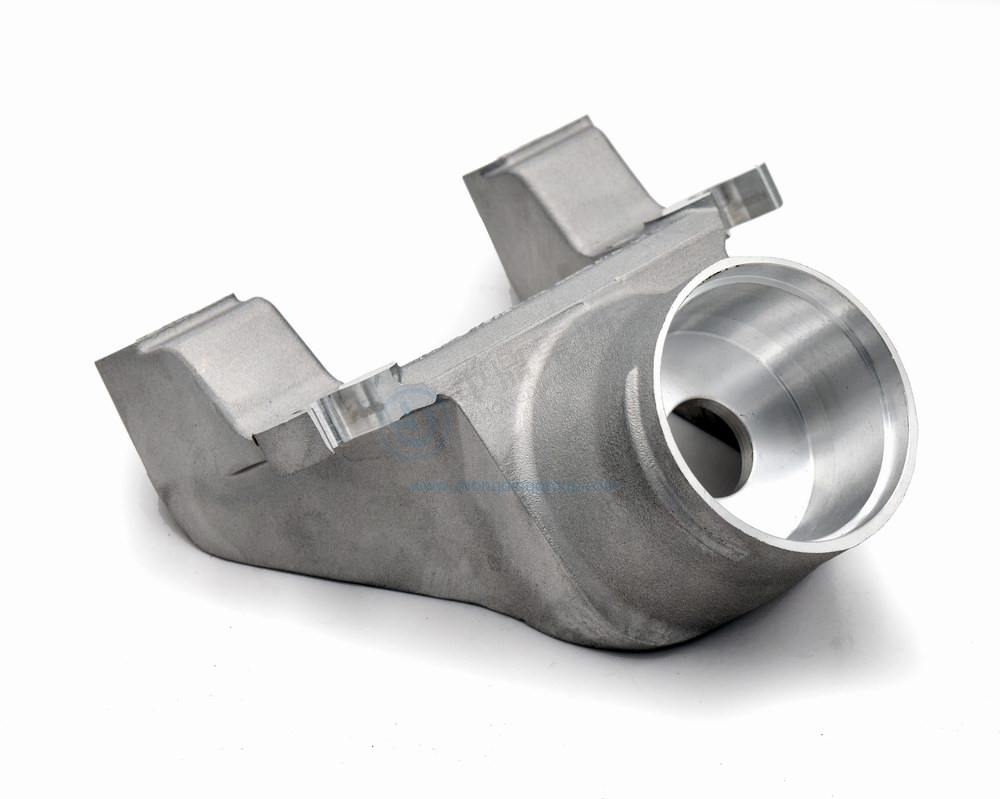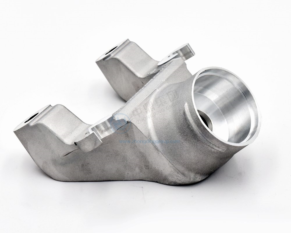 鋁合金重力鑄造產(chǎn)品,主要連接車(chē)身和后車(chē)輪減震器主體,起減震和降噪的效果