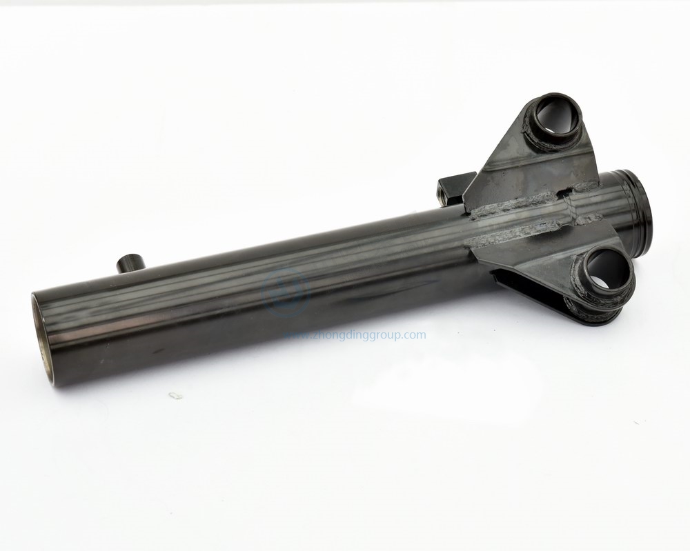 該產(chǎn)品是液壓轉向油缸部件,采用可編程的自動(dòng)液壓沖孔機,由內而外沖孔,確保鋼管內壁無(wú)毛刺,采用可編程自動(dòng)焊接機焊接油嘴,確保焊接高效、穩定與準確,采用進(jìn)口MAG焊接機器人進(jìn)行支架焊接,提高焊接效率與精度。